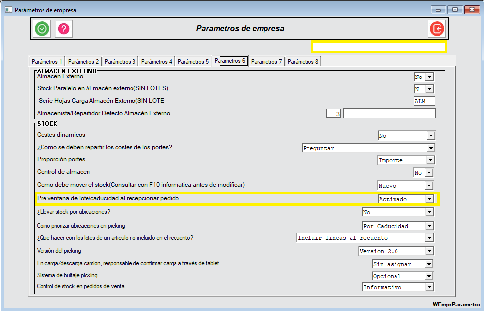 En SED tenemos una ventana desde la cual podremos indicar lotes a la hora de recepcionar un pedido sin la necesidad de ir línea por línea, para ello primero deberemos activar un parámetro de empresa que nos permitirá usar esta ventana.